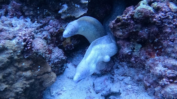 In jedem dieser Tauchgänge im 28 Grad Celsius warmen Wasser, konnten eine Vielzahl von Meereslebewesen beobachtet werden. Man konnte beispielsweise neben Leopardenhaien, Rochen, sehr großen, auch freischwimmenden Muränen, Sepienpärchen, Seeschlangen, Lobster, Schildkröten, Fischschwärmen, nicht zuletzt auch ein Seepferdchen beobachten. Die unterschiedlichsten, farbenfrohen und bizarren Korallen, machten jeden Tauchgang ebenso zu einem eindrucksvollen und spannenden Erlebnis.