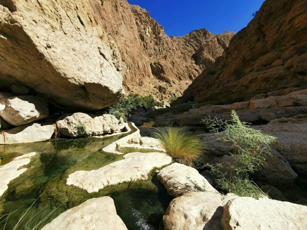 Nach zwei weiteren Nächten in Sur mit dem Besuch des am Hafen liegenden Dhau Museums, hier konnten die traditionelle Segelschiffe des arabischen Raums bestaunt werden, eines Fischmarktes und des dortigen Souks, fuhr die Gruppe weiter zum „Wadi Tiwi“ und am darauffolgenden Tag zum „Wadi Shab“, wo mutige mehrere Meter durch einen engen Felsspalt zu einer Höhle mit Wasserfall schwimmen konnte.