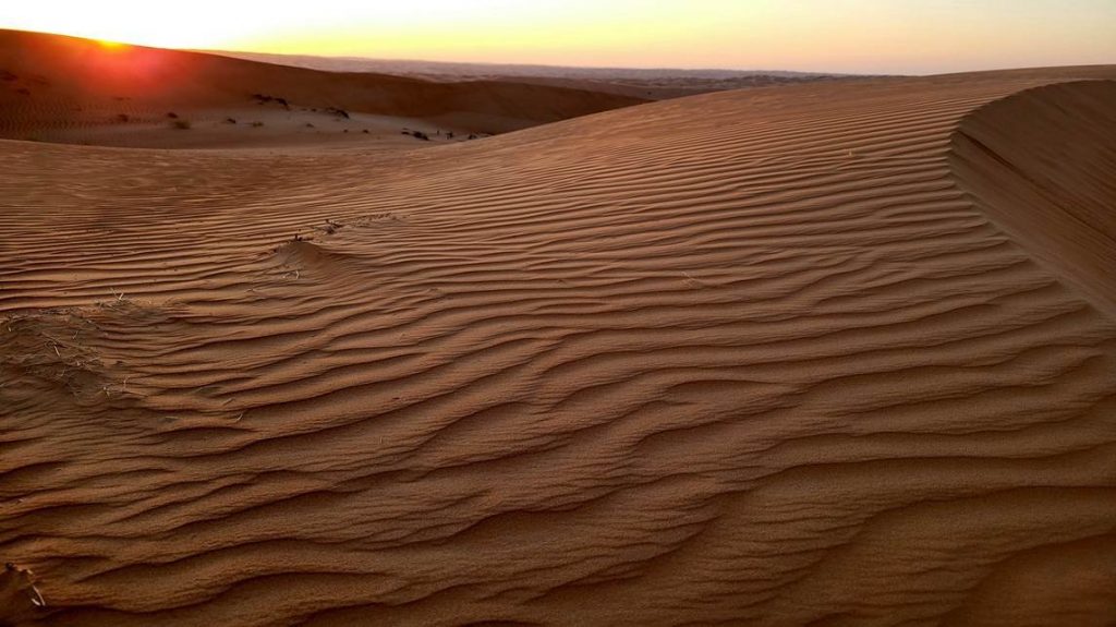 Nach einer weiteren Nacht in Nizwa führte die Route über Ibra, einem der ältesten Orte des Omans an den Nordrand der Wahiba Wüste und schließlich zu einem weiteren Highlight, einer Übernachtung in einem Wüstencamp. Rechtzeitig zum Sonnenuntergang war die kleine Gruppe dann auf einer hohen Sanddüne um die faszinierende Landschaft auf sich wirken zu lassen. Nach einem üppigen Abendessen genoss man am Lagerfeuer die Ruhe und Abgeschiedenheit der Wüste und den magischen Sternenhimmel.